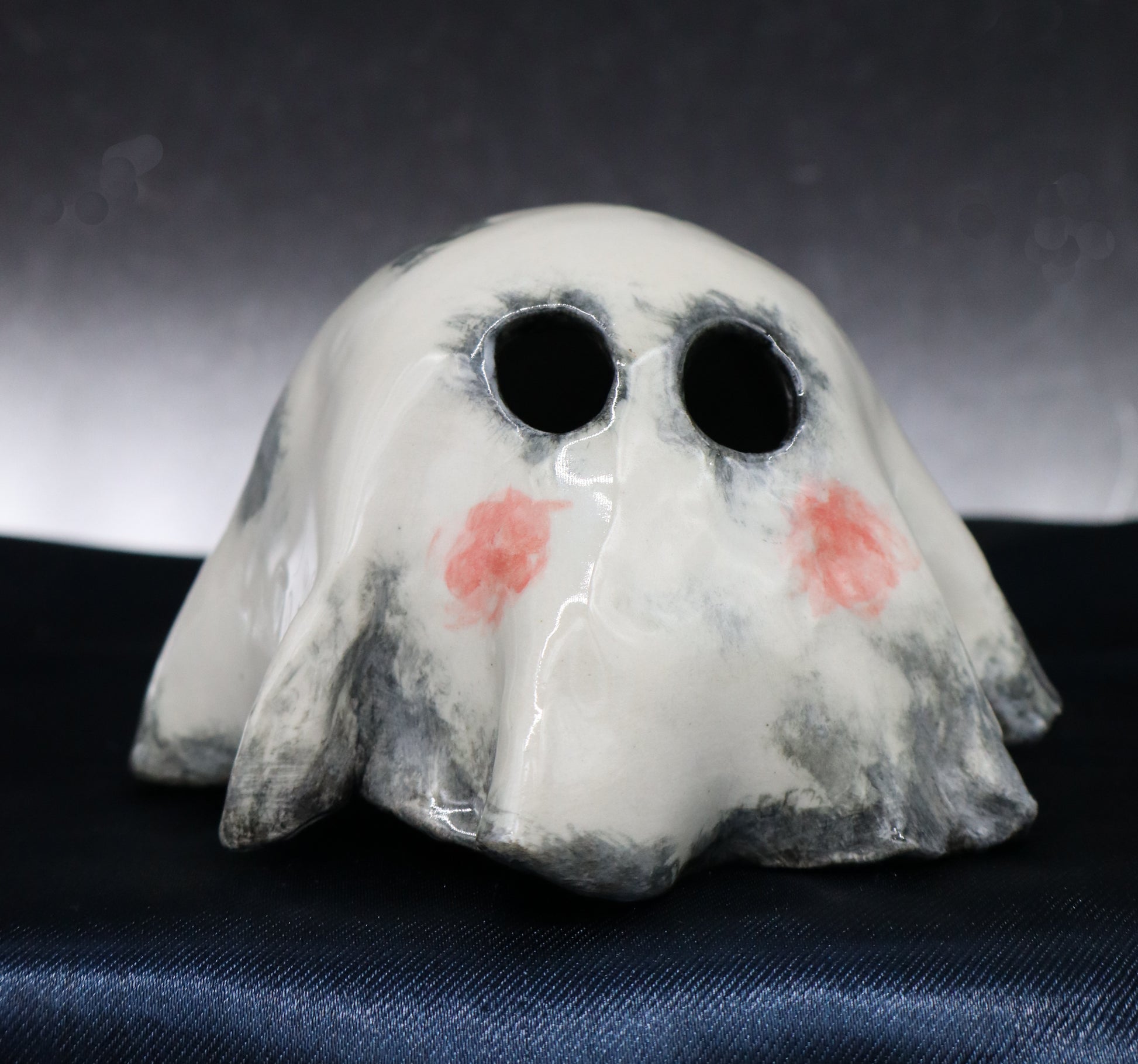 Cute in the light and a little eerie in the night. Perfect companion for your desk or porch.
